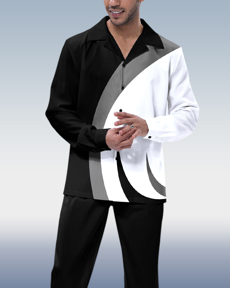 Men's White Black Color Block Long Sleeve Walking Suit