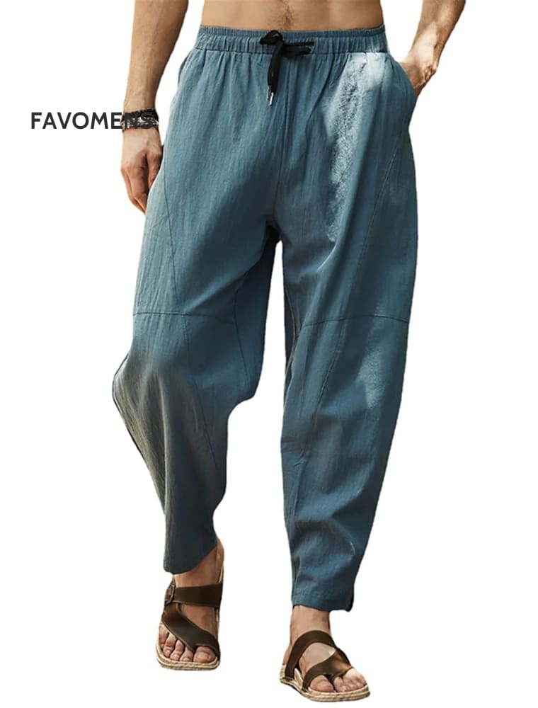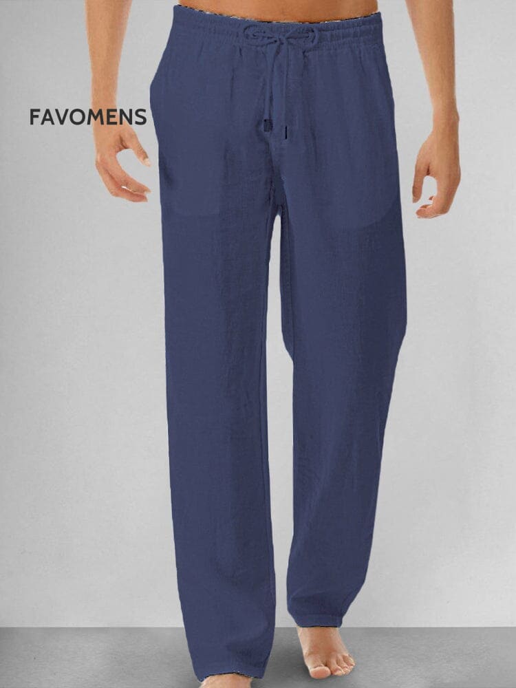 Men's Solid Color Drawstring Pockets Loose Casual Breathable Lightweight Linen Pants
