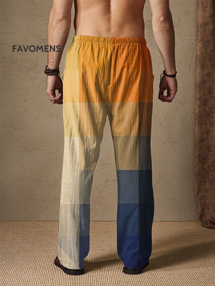Men's Linen Cotton Vintage Gradient Mosaic Geometry Art Print Comfy 100% Cotton Pants