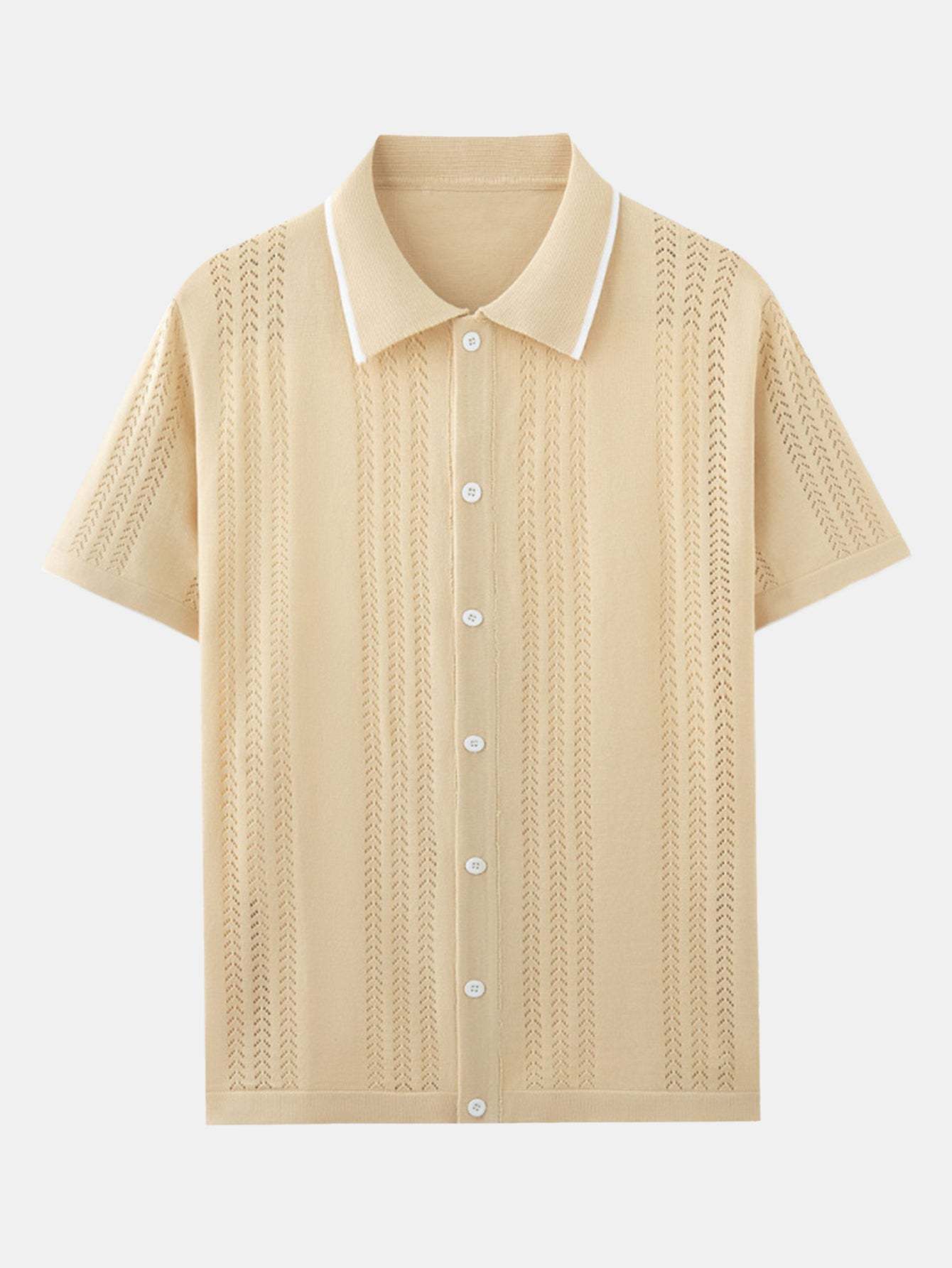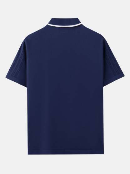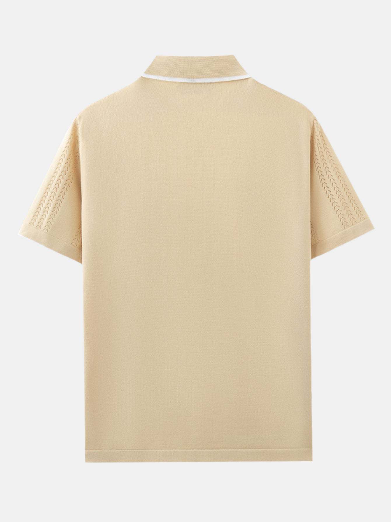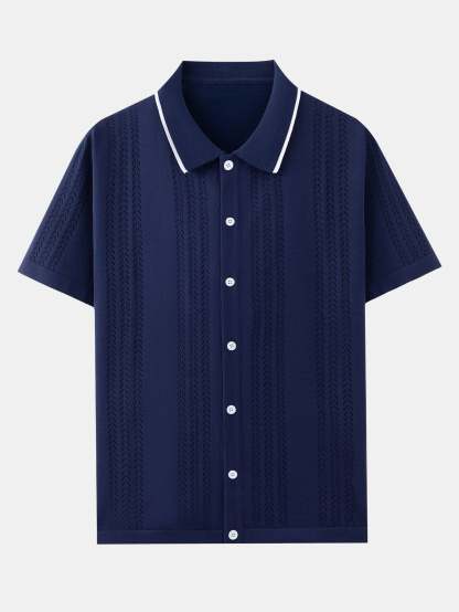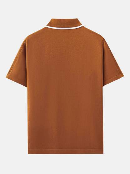Featuring a unique retro-inspired pattern, this shirt combines classic polo styling with a modern knit texture. The short sleeves and breathable fabric offer comfort and ease, perfect for warm-weather wear or layering with casual pieces.
