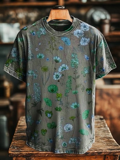 Unisex Retro Floral Print Casual Loose Short Sleeve T-Shirt
