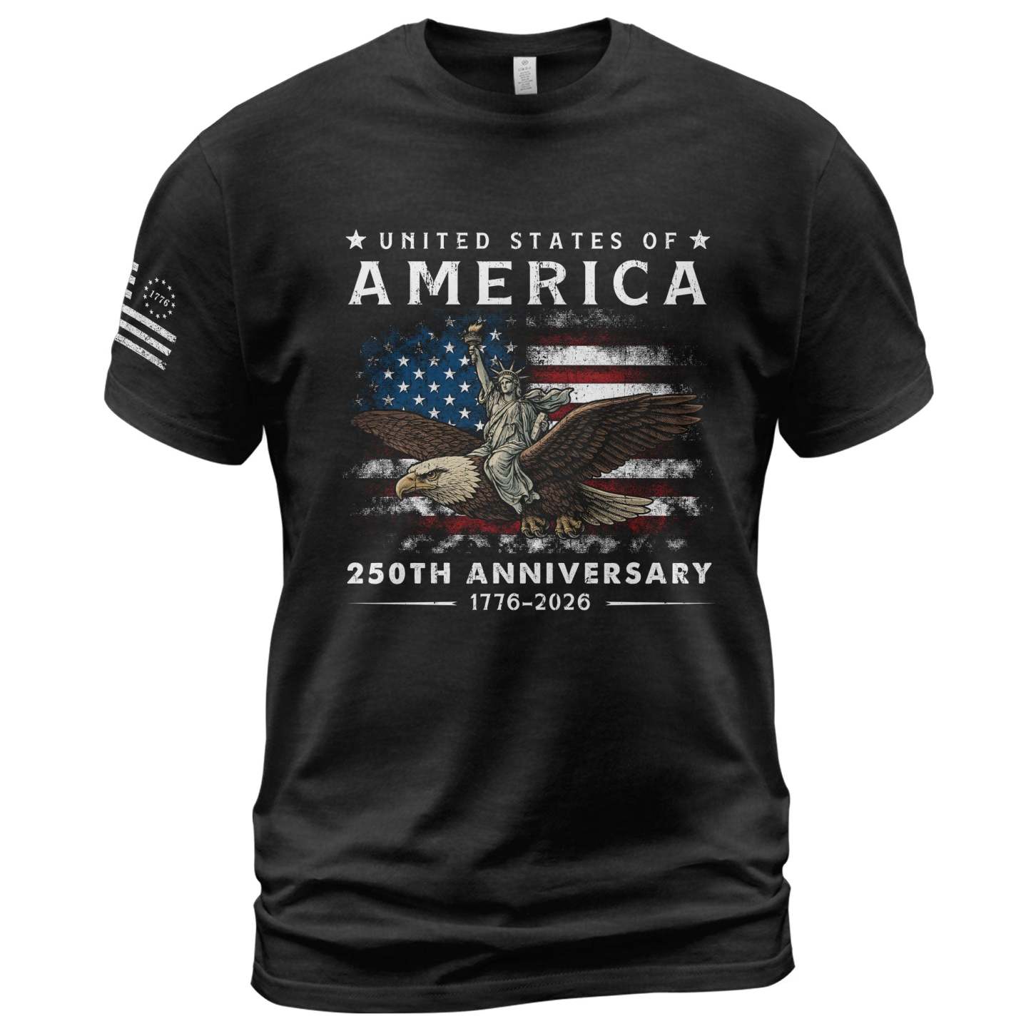 United States of 250 Years America Anniversary Shirt 1776-2026 USA Flag Liberty Eagle Patriotic Mens