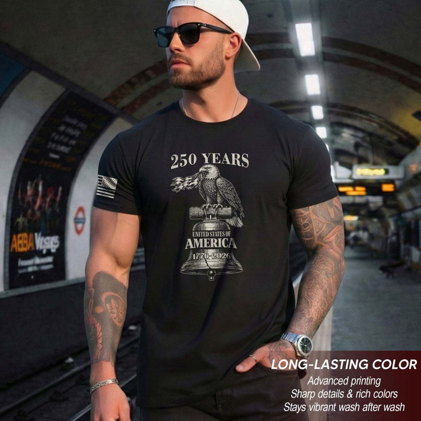 USA 250 Years Vintage T-Shirt 1776-2026 Patriotic Eagle Flag Liberty Bell Men’s Tee