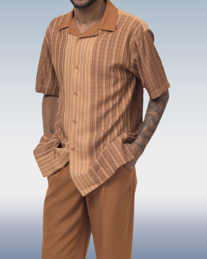 Vertical Striped Walking Wear 2 Piece Short Sleeve Set