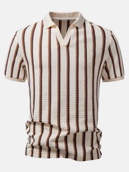 Crafted from soft, breathable fabric, this T-shirt ensures all-day comfort while maintaining a modern, stylish look. The classic stripe pattern combined with a flattering V-neck design adds a subtle touch of sophistication, making it perfect for casual, smart-casual, or layered outfits.
