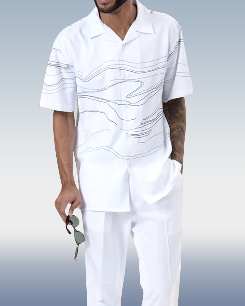 White Art Two-Piece Short Sleeve Print Walking Pants